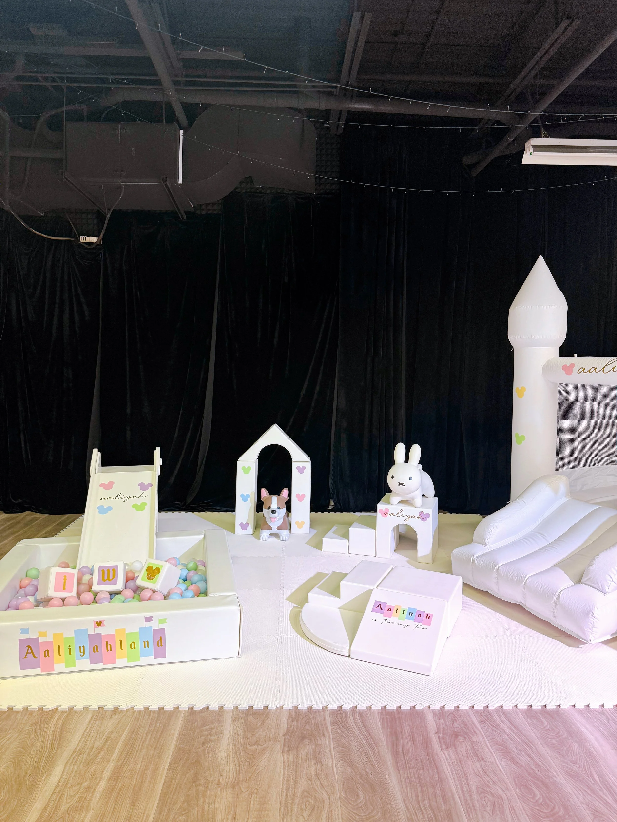 ∘ 5ft x 5ft mini ball pit + white wooden slide